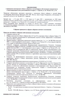 Уважаемые собственники, настоящим уведомляем о проведении общего собрания в заочной форме